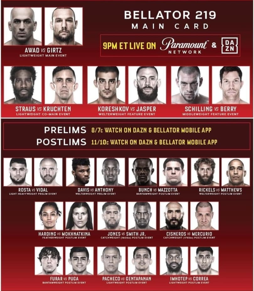 Где и когда смотреть трансляцию Bellator 219 Awad vs. Girtz