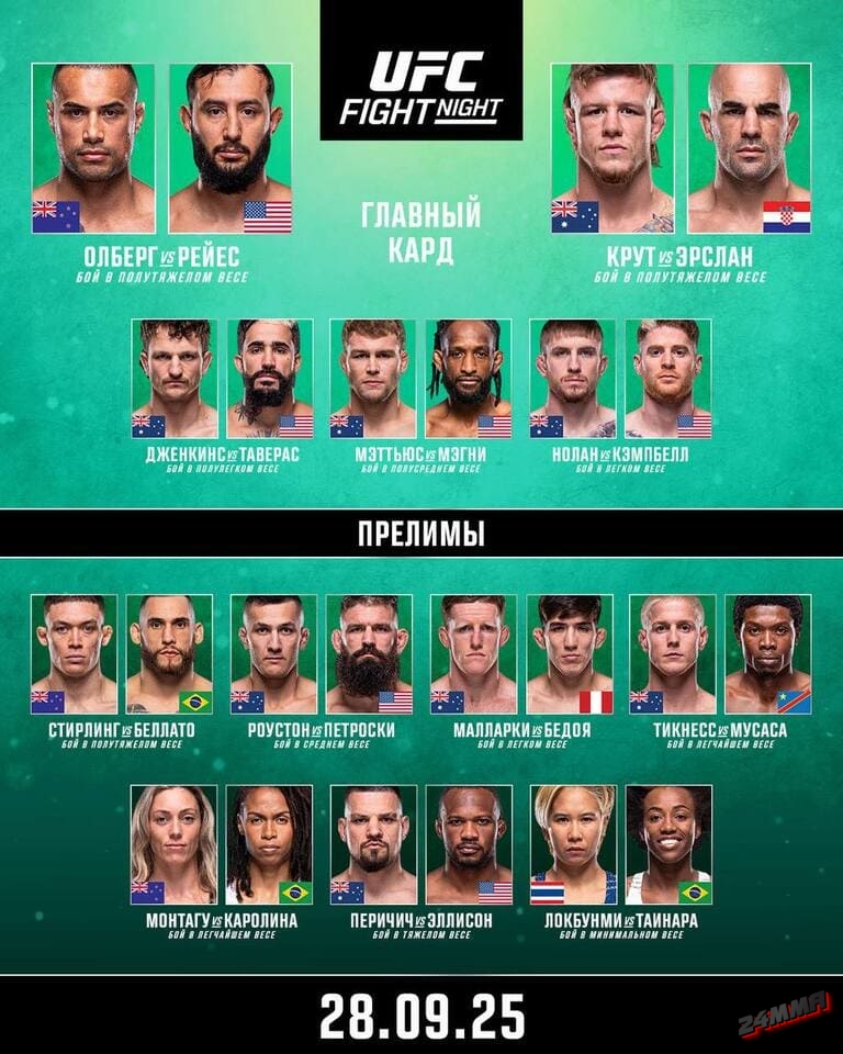 Австралийский боец Джимми «The Brute» Крут возвращается в полутяжелый вес, чтобы порадовать родную публику. После непростого периода в карьере, когда победы сменились поражениями и ничьей, Крут наконец прервал череду неудач, засабмитив соперника в первом раунде в своем последнем бою. Он известен своим агрессивным грепплингом и желанием финишировать оппонентов. Его соперник, хорват Иван Эрслан, — двукратный претендент на титул в лиге KSW, который пока не смог одержать победу в UFC. Для Эрслана это шанс заявить о себе, а для Крута — возможность доказать, что он снова в игре.